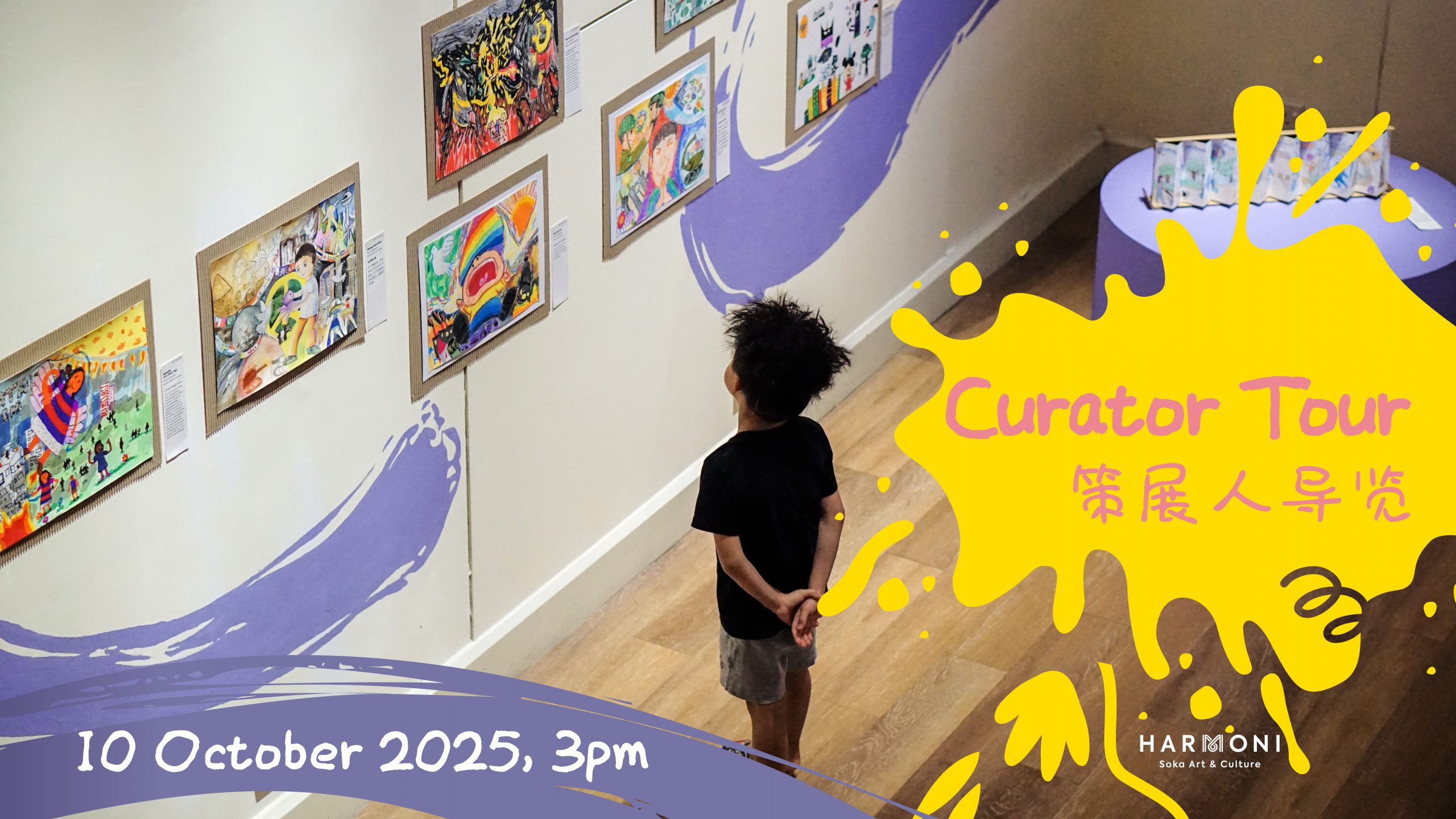 Walk through the exhibition with our curator! Join us at Harmoni to explore the “Ta-da! Look at My Lines!” Children’s Peace Art Exhibition 2025.